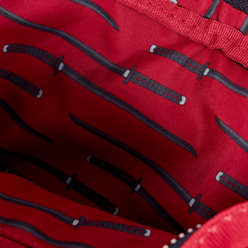 This sling bag features an all-over print of Tanjiro’s earrings. It zips closed to keep your essentials secure. Attached to the crossbody strap is a coin bag to hold smaller items.