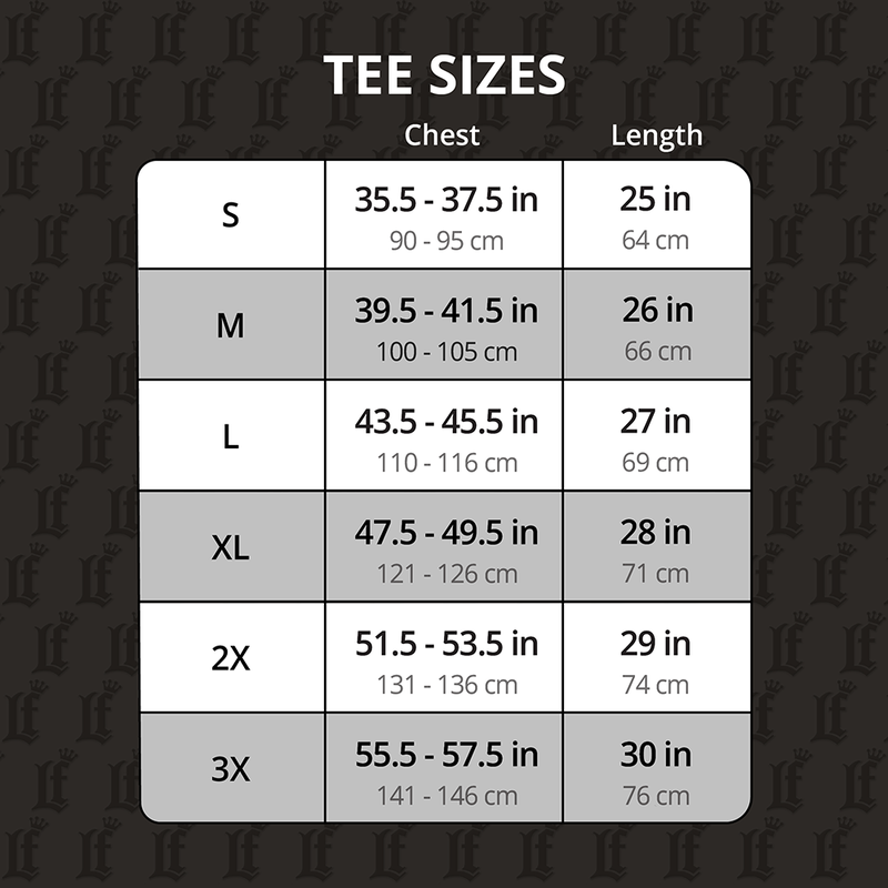 S, M, L, XL, 2XL, 3XL