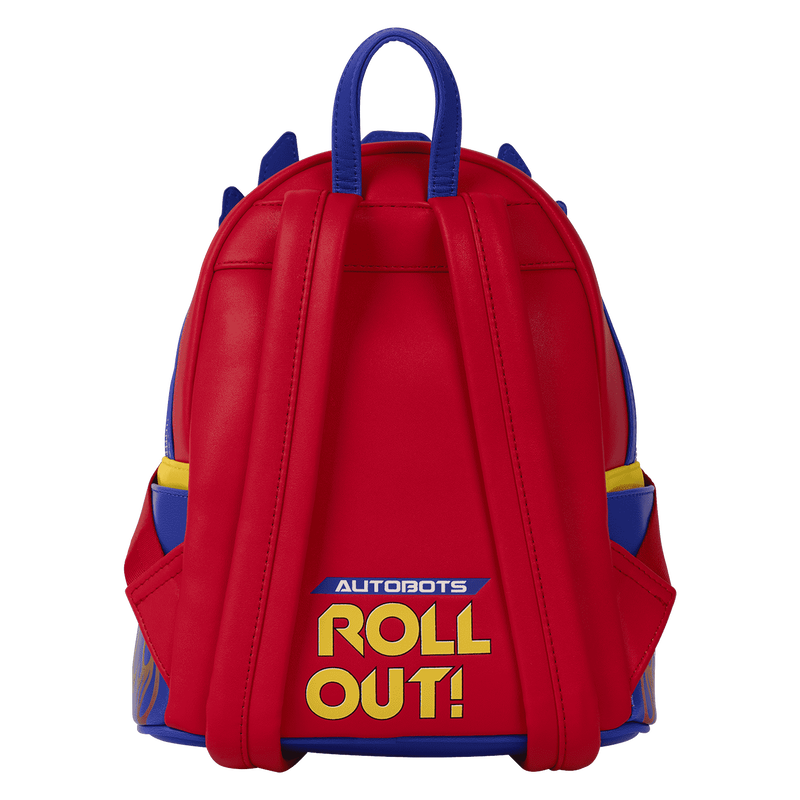 This mini backpack features Optimus Prime in applique detail on the front of the bag. With pops of red, yellow, and blue, this bag makes a bright statement! You’ll find an image of flames on the side pocket and the phrase, “Autobots, Roll Out!” written on the back. Oh! And the coolest part? Optimus Prime’s eyes glow in the dark!